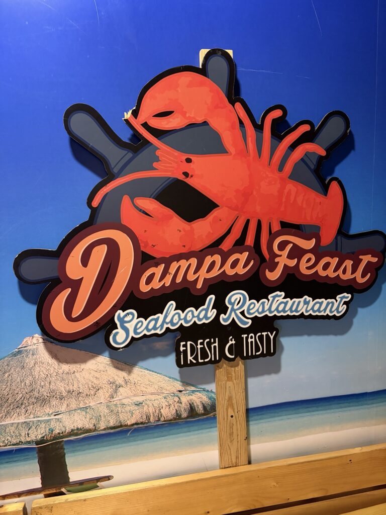 اليوم قررت انا والولد تغير جو و العشاء في مطعم دامبا فيست Damp Feast وهو مطعم المؤكلات البحرية المفضل بالنسبة له ، يستاهل بعد اسبوع حافل بالمدرسة يتم مكافأته وجعله يرفه عن نفسه في عطلة نهاية الأسبوع ، الحقيقة ان هذا المطعم مميز بالاكل البحري على الطريقة الآسيوية والاكل فعلا لذيذ